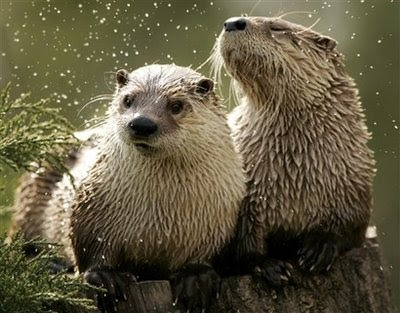 Dart and Osha (Sorry the pic. is so big, my computer won't let me make it smaller) Twins, 1 1/2 years. Osha has a very strange fur color, white. One of the only white otters to be seen. Her personality is very princess-like. She loves swimming, and playing dress-up, hates adventure, and violence, is cautious and sometimes mischievous. Dart is on the other hand (laying down), adventurous, loves action, swimming, mud, bugs and all other things Osha hates. He is very playful and surprisingly helpful. His fur is slowly getting darker.